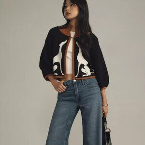 Anthropologie Maeve Dog Knit Cardigan Sweater Cape Greyhound Dogs Shrug 1X NWT