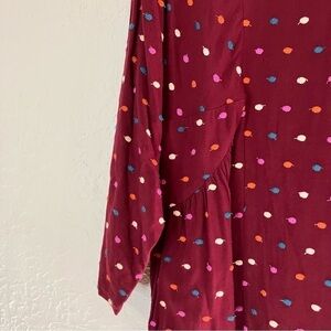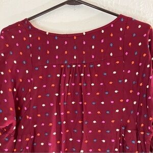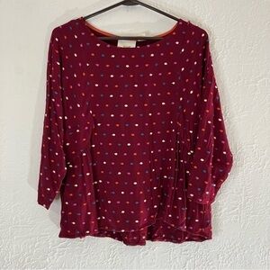 In excellent used condition no rips, tears or stains. Embroidered with dainty polka dots, this top makes a oh-so-cheery statement for the season. Multi colored embroidered polka dots, seamed sides, gathered back, 3/4 sleeves, bateau neckline and relaxed fit.