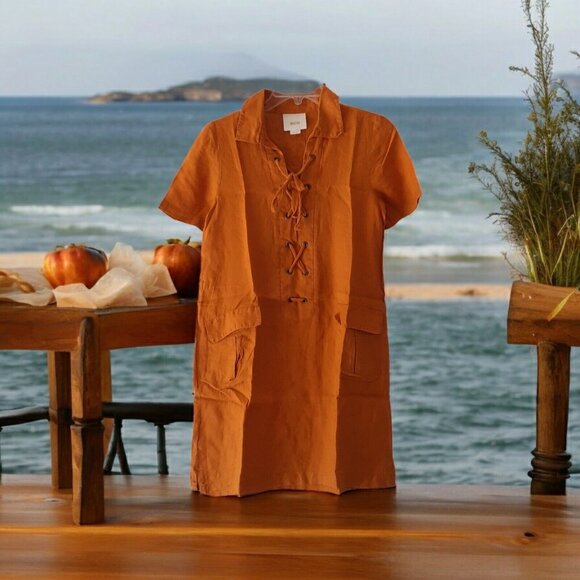 Anthropologie Maeve Dress 100% Linen Lace Up Front Pockets Size 0 Fall