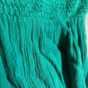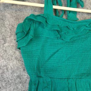 Anthropologie Maeve Dress S 4 6 Green Halter Lined Gauze Cotton Smocked Pockets Casual Solid Ruffle Neckline