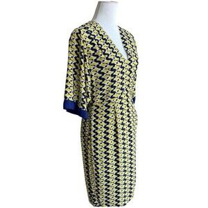 Anthropologie Maeve Dress Size 4 Mirabilis Kimono Sleeve Yellow Blue Geometric