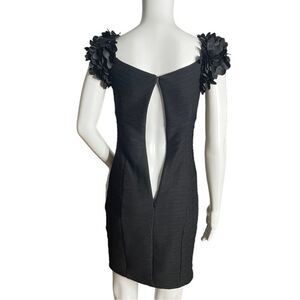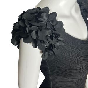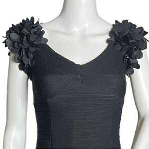 Anthropologie Maeve Dress Womens 0 Black Viala Pintuck Floral Applique Preppy