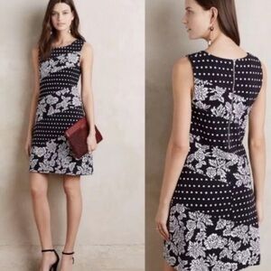 Anthropologie Maeve Effemy Floral Jacquard Polka Dot Shift Dress Small