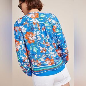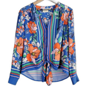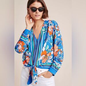 Anthropologie Maeve Elan Scarf-Printed Blouse in Blue Motif 6 NWOT