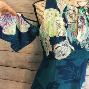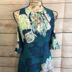 Anthropologie Maeve “Elia”Dress Cold Shoulder Teal Floral Size 0