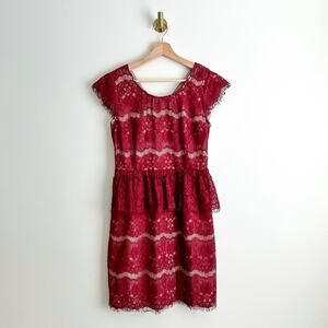 Anthropologie Maeve Elsa Lace Peplum Mini Sheath Dress Burgundy S