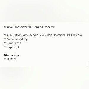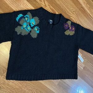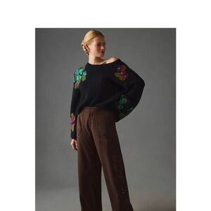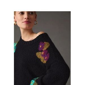 Anthropologie Maeve Embroidered Flowers Cropped Sweater Size Medium NWT