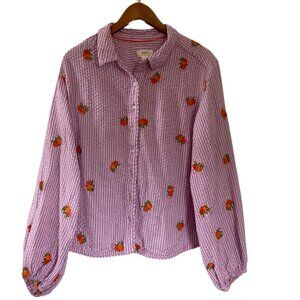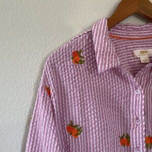 Anthropologie Maeve Embroidered Orange Pink Striped Button Down Shirt Women’s XL