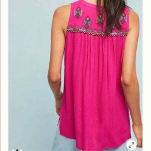 Anthropologie Maeve Embroidered Split Neck Tank Size Small