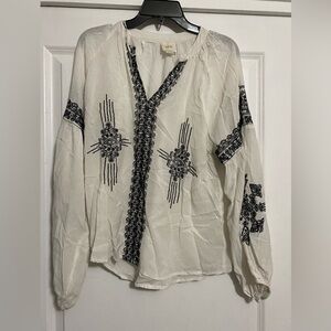 Anthropologie Maeve Embroidered White and Black Women's Top