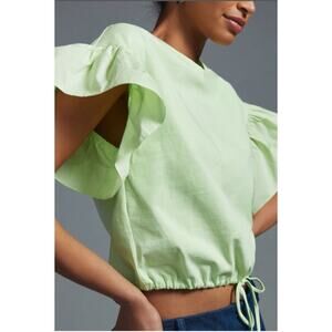 Anthropologie Maeve English Factory Ruffled Drop Shoulder Top in Lime Size Small