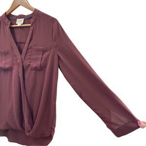 Anthropologie Maeve Eva Faux Wrap Drape Front Blouse Burgundy Mauve Size 6