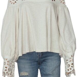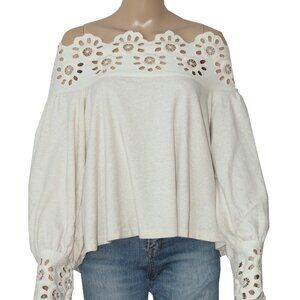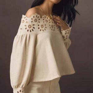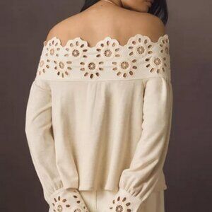 Anthropologie Maeve Eyelet Babydoll Blouse Top Off The Shoulder L