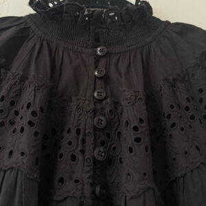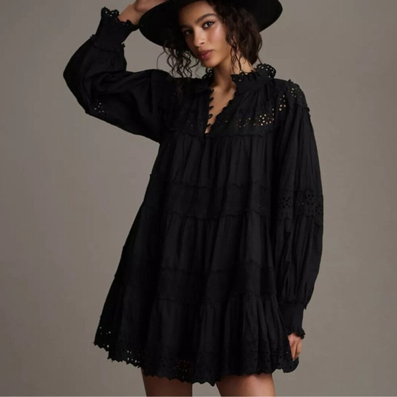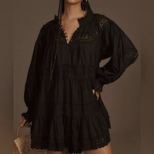 Tags: Maeve Anthropologie dress, black lace mini dress, eyelet babydoll dress, long sleeve dress, XS/S dress, lace overlay, romantic mini, boho chic dress, cotton blend dress, Anthropologie exclusive, swim cover-up, work dress, resort style, feminine outfit, versatile black dress, vacation wear, office-to-evening dress, lightweight fall dress