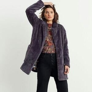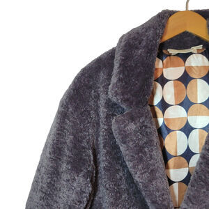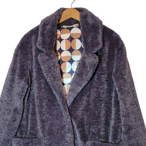 Anthropologie Maeve Faux Fur Teddy Coat Purple Cozy Mid Length Fall Winter S