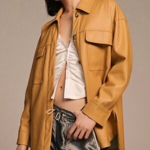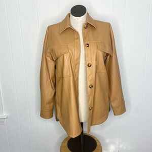 Anthropologie Maeve Faux Leather Shirt Jacket Tan Fall Shacket Size XS Oversized