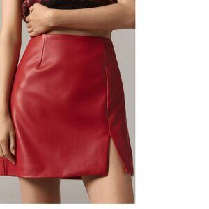 Anthropologie Maeve Faux-Leather Side-Slit Micro Mini skirt 14 red color nwt