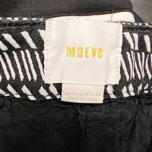 Anthropologie Maeve Fieldnotes Button Front Skirt Black White Sz 12