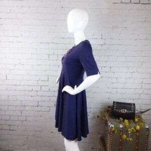Anthropologie Maeve Fit And Flare Laced Up Dress In Blue Size XS