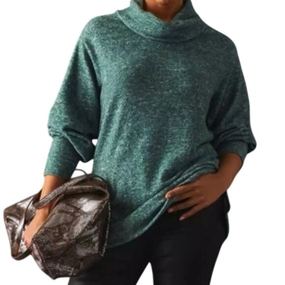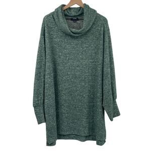 Anthropologie Maeve Fleece Sweater Cowl Neck Longline Tunic Teal Green Womens 2X