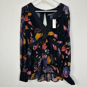 Anthropologie Maeve Floral Chiffon Blouse Open Back Tunic Cottagecore US 4 NWT