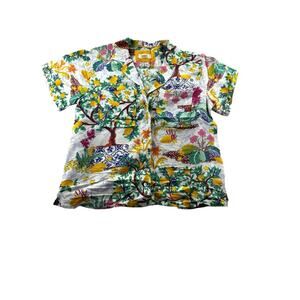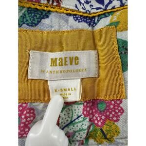 Anthropologie Maeve Floral Classic Surf Button Up Shirt Size XS Linen Blend