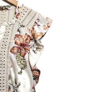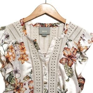Anthropologie Maeve Floral Eyelet V Neck Short Sleeve Linen Blend Top Size XSP