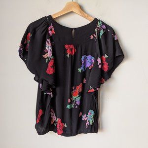 Anthropologie Maeve Floral Flutter Sleeve Blouse