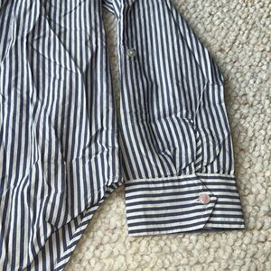 Anthropologie Maeve Floral Heart Embroidery Striped Button Down Blue White 12