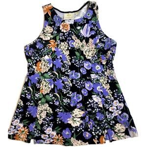 Anthropologie Maeve Floral Print Peplum Side Buttons Sleeveless Vest Tunic Top M