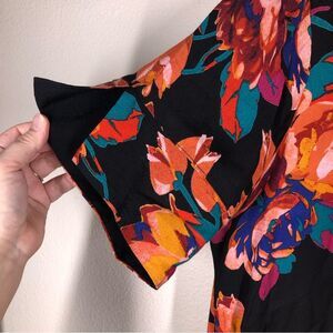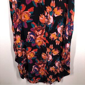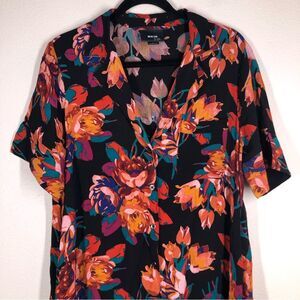 Anthropologie Maeve Floral Shirt Dress Button Front Black Pink Size Medium