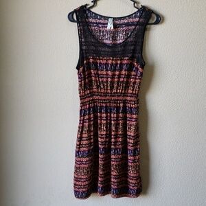 Maeve by Anthropologie Dress. Sleeveless, featuring black dot sheer and a colorful flower pattern. Elastic waist. Perfect for the spring and summer. Another wonderful feature of this dress is that it has pockets!