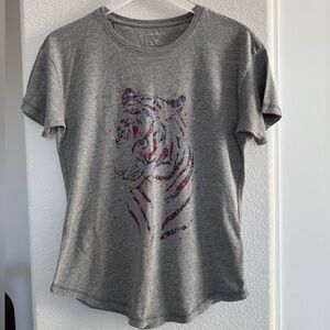 Anthropologie Maeve Floral Tiger Gray Graphic Tee