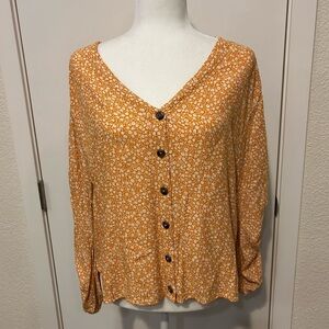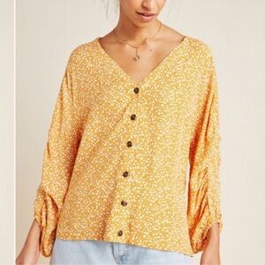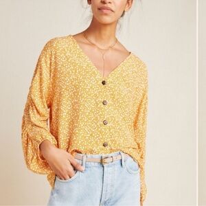 Anthropologie Maeve Floral Venice Peasant Blouse yellow orange size XS oversized