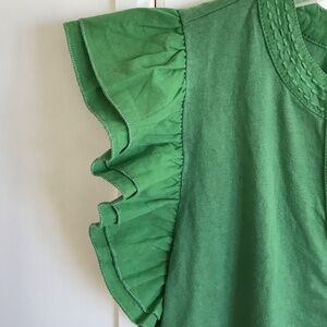 Anthropologie Maeve Flutter Sleeve Cotton V Neck Green Top Women’s Size X-Large