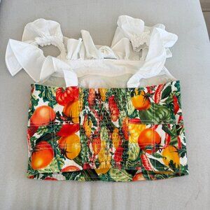 Anthropologie Maeve Flutter Sleeve Crop Blouse Tomato Print Top Small