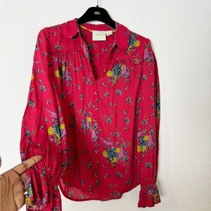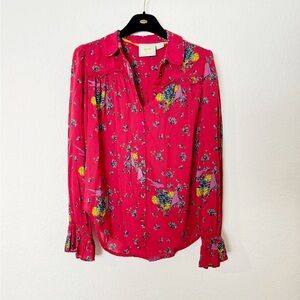 Anthropologie Maeve Fredericka Bird Ruffle Button Down Shirt Size 0