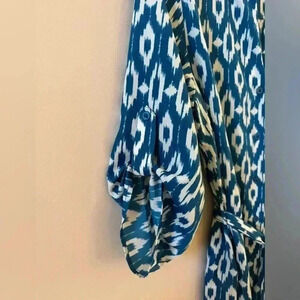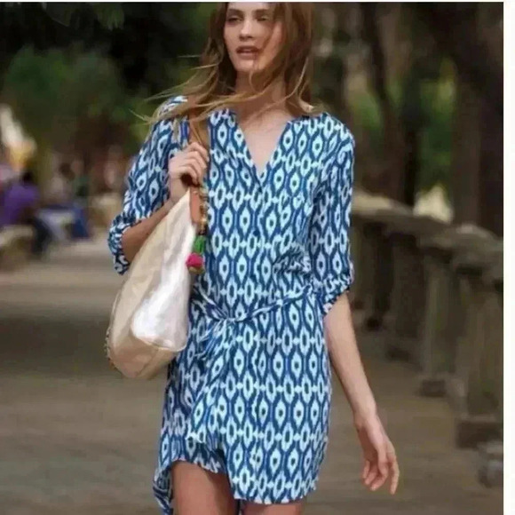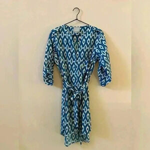 Anthropologie Maeve Frequencies Blue White Ikat Oversized Shirt Mini Dress Small