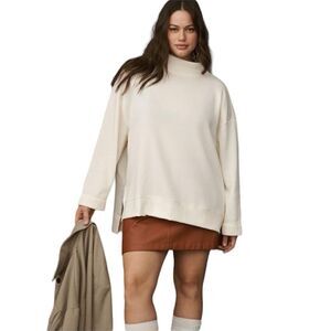 Anthropologie Maeve LS Funnel-Neck Tunic Pullover Sweatshirt in Cream
