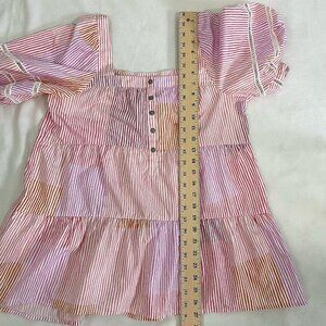Anthropologie Maeve Gable Tiered Tunic Square Neck Puff Sleeves Top Pink -Small