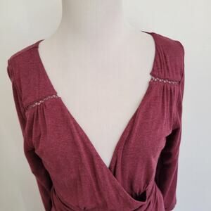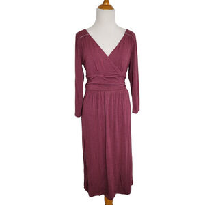 Anthropologie Maeve Galena Dress Jersey Knit V Neck Burgundy Women Medium