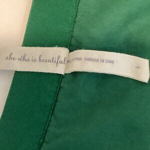 Elevate your wardrobe with this stunning Anthropologie Maeve Gathered Together dress. Featuring a solid green color, this sleeveless tank dress has a round neckline and a pullover closure. The dress is made of lightweight rayon fabric that is perfect for summer and spring seasons. This dress has a fit and flare style with ruffle, button, and layered accents. The collarless, keyhole neck dress has a cotton lining. It comes in size 4 and is machine washable. Perfect for travel, parties, or casual outings, this dress is a must-have for every fashion-forward woman.