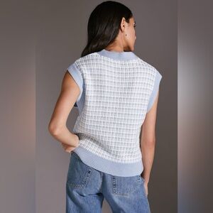 Anthropologie Maeve Geometric Sweater Vest Blue Motif | Size Large