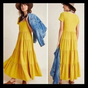 Anthropologie Maeve Gillian Tiered Maxi Dress in Honey Sz XS