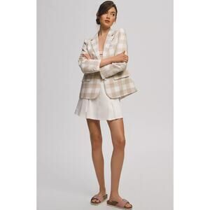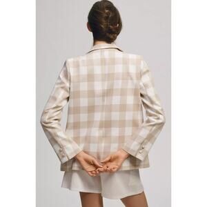 Be fashionable and stylish with the Maeve Gingham Blazer from Anthropologie. This beautiful blazer is made from a blend of polyester and rayon, and has a polyester lining for comfort and durability.