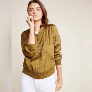 Anthropologie Maeve Golden Tan Silky Bomber Jacket Women’s Size Small S