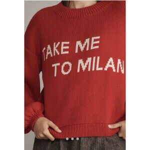 Anthropologie Maeve Graphic City Sweater Sz XXS Red