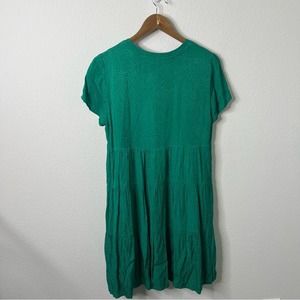 Anthropologie Maeve Green Cheetah Leopard Jacquard Tiered Dress Womens Size S