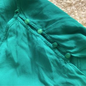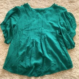 Flutter sleeve with button detail, v-neck, pin ticks in front and back, floaty 100% rayon
