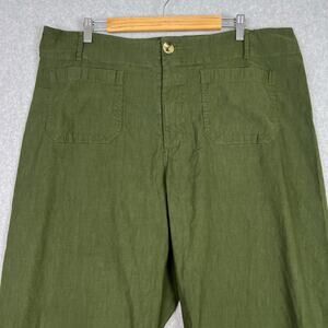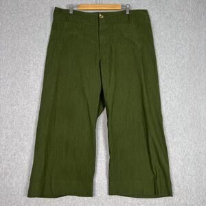 Anthropologie Maeve Green The Colette Linen Blend Crop Wide Leg Pants Size 20